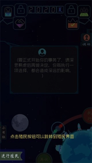 2、简单易上手的操作玩法,玩家需要判断科技和政策是否应该执行;