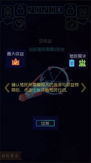5、在殖民界面中,玩家需要投入一定的资源,再点击出发开始殖民行动;