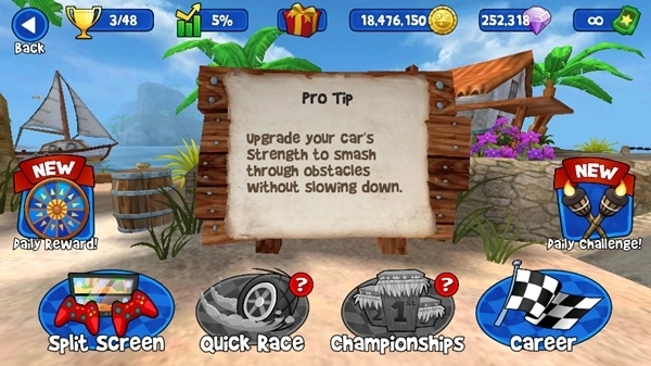 1.精美的卡通场景设计,打造一场快速沙滩赛车的视觉盛宴。