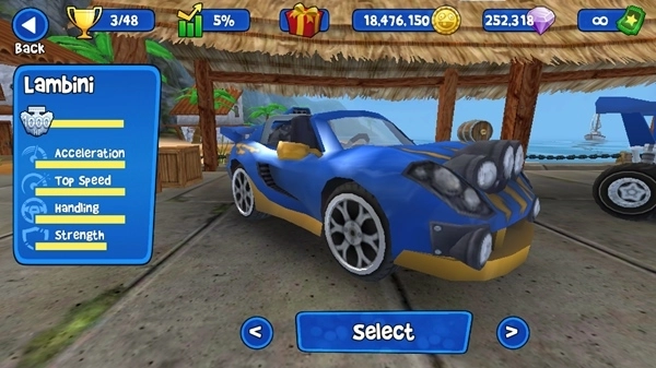 玩家在游戏中扮演的是一位帅气的赛车手,相比与常规的跑道来说,沙滩上还是具有一定阻力的,开入海中、翻车、撞飞对手或者障碍物都是常有的事,无限刺激体验尽在其中。