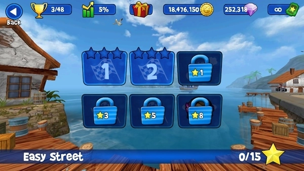 无比精致的3d卡通画面,阳光、沙滩、蔚蓝的大海、海鸥、椰树、小屋构成了一副美丽的滨海场景,无论是尘土飞扬的沙滩还是坑坑洼洼的石头路,特效制作都将它们打造的非常具有带入感。