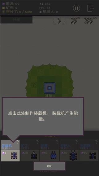 2、点击制作装载机,可产生能量;