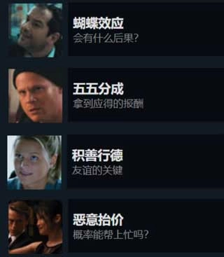 1、蝴蝶效应(会有什么后果?)这个是按流程第一个可拿到的成就,开局遇到问路陌生人时,做出任意选择即可得到。按理说当你正在看这篇攻略时,你已经解锁这个成就了。