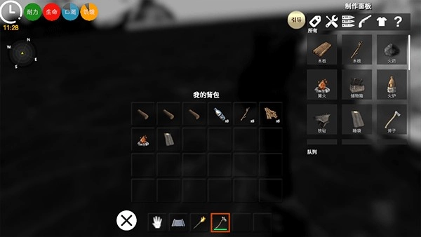 5、左侧的指南针防止迷路,拾取到的物资可以在背包内找到并点击使用,以维持自己的基本生存。