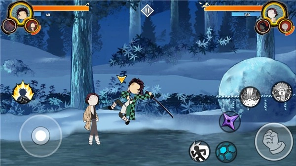 《火柴人鬼灭之刃》是一款极具热血感与刺激性的动作格斗游戏,它巧妙融合了爆款动漫《鬼灭之刃》与火柴人两大热门元素,整体采用动漫卡通风格的美术设计。游戏以横版格斗作为核心玩法,不仅画质精致细腻,技能特效更是绚烂华丽,再加上丰富多变的战斗场景,以及对原作角色技能的高度还原,为玩家打造出了沉浸式的优质战斗体验。