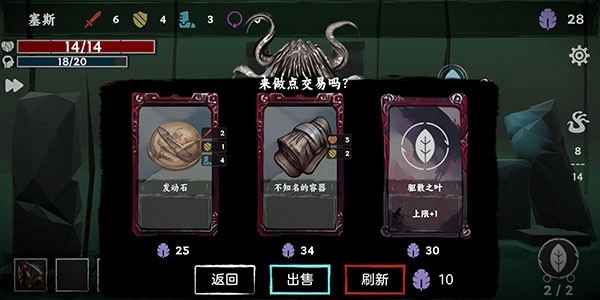 6、消灭怪物后可以获得树叶币,使用树叶币可以在商店卡牌中进行购买和升级。