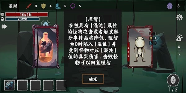 2、与混沌值对应的是玩家的理智值,理智值在被具有混沌属性的怪物攻击或者触发部分事件后将会降低,理智为0时陷入混乱并受到怪物对应混沌值的真实伤害,击败怪物可以回复理智。