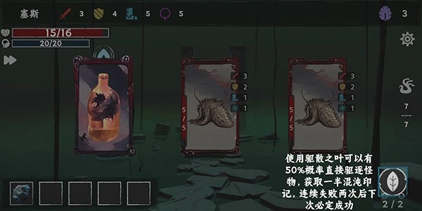 3、使用驱散之叶可以有50%概率直接驱逐怪物,获取一半混沌印记,连续失败两次后下次必定成功。