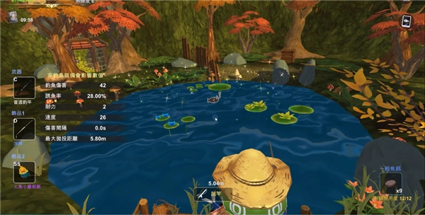 2、选择你钓鱼的抛竿点位,点击抛竿
