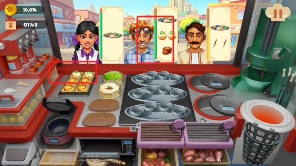 1.在顾客等待的时间范围之内提供美味的食物,即可顺利获取金币收益。