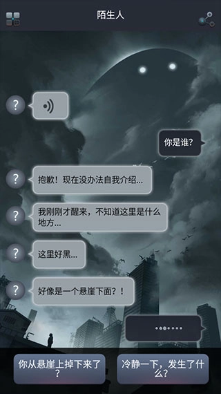 3、如图,进入对话框界面,会有一条陌生人的新消息,对话中选择你想选择的回答,就可以进行回复了,