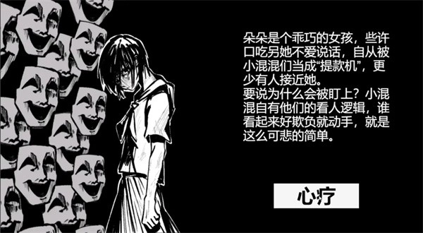 2、通过消除朵朵心中的怪物来消灭所有的负面情绪,帮助朵朵可以走出被欺负被霸凌的阴影,让朵朵可以治愈好心里的创伤。