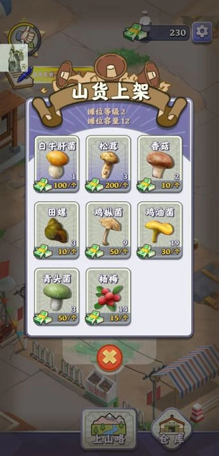 2、游戏中打开摊位后,你可以出售更多商品,赚更多的钱,从而扩大自己的店铺。