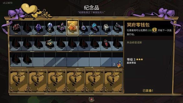 玩家第一次赠送NPC仙酒会受到回礼,这些回礼可以理解为饰品,佩戴时都会有额外的效果。携带饰品进行战斗能够让其升级,饰品和武器在同一房间玩家可以在战斗前和完成一张地图时进行更换。