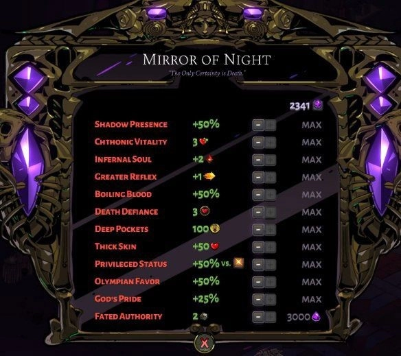 当玩家血量耗尽就会死亡,死亡会失去当前身上的所有加成、恩赐和金币,只会携带黑暗宝石、万能 钥匙、冥府钥匙、宝石、钻石、仙酒和ambrosia这些物品回到冥王圣殿。死亡是游戏玩法之一,每次死亡后在冥王圣殿都会触发新的对话。