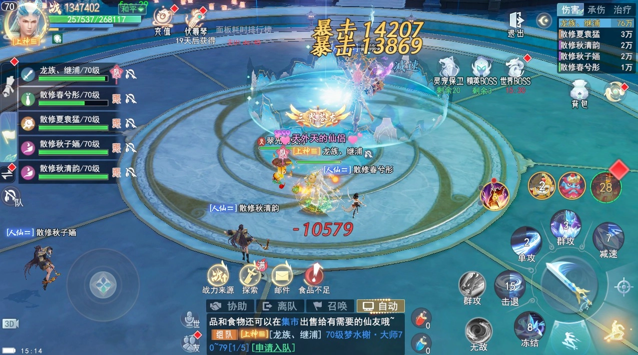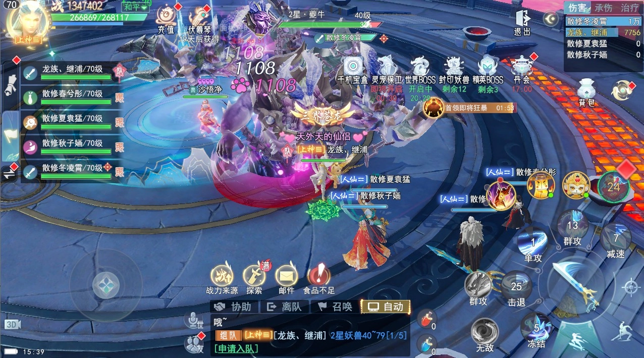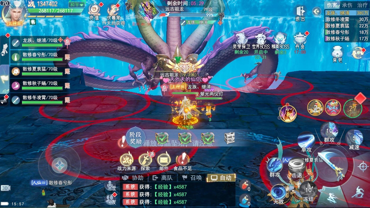 世界boss于40级开启,每天11点30分、15点30分、17点30分、22点出现,每轮持续30分钟世界boss是一个组队挑战,组队伤害排名的玩法。个人奖励排名根据职业中的伤害排名进行计算;队伍评分排名根据队伍造成的伤害、承伤、治疗量综合评分进行排名计算。