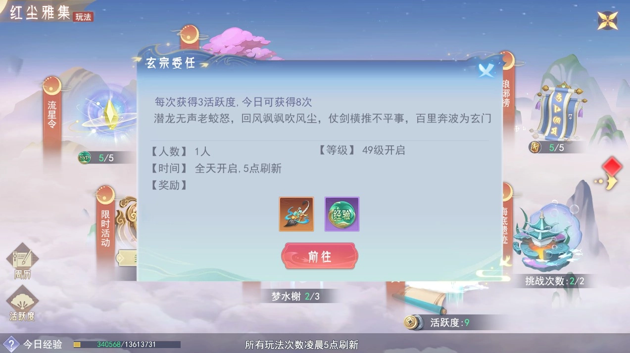 流星令在玩家等级达到40级时解锁,玄宗委托则于49级开放。流星令属于游戏内的组队日常玩法,参与后能获取丰富的装备与日常材料;玄宗委托是单人日常玩法,完成8环任务可获得1次“召唤绘笔”转盘抽奖机会,运气好的话能直接拿到10连抽奖励!