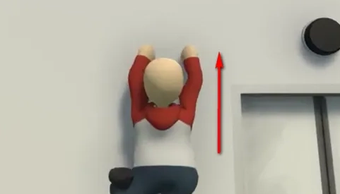 7、跳跃后快速双手抓墙,重复操作,人就会垂直向上爬了,如下图所示