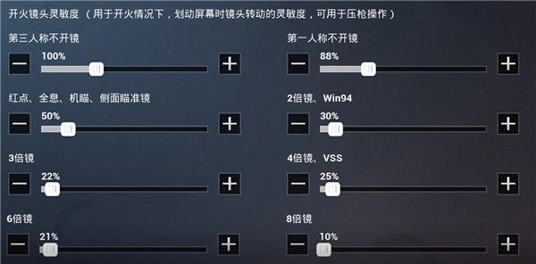 开火灵敏度,这个需要和上方的镜头灵敏度相结合才能做到快、准、狠,开火灵敏度就是开镜后开火的灵敏度,常常和压枪联系到一起。同样,调太高压枪的时候准星会急剧下降迫使特种兵们打不到敌人,太低呢压枪的时候准心会翘到天上找不到敌人。所以说前两个调合适,这个必不可缺,我们为特种兵准备好了。