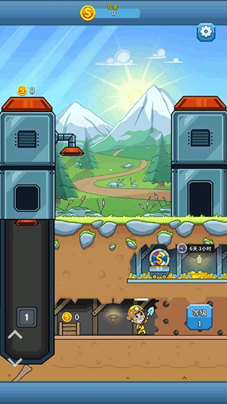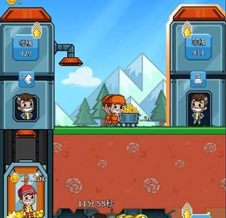 5、当经理头上出现小锤子的图案时,点击小锤子可以对开采的矿工进行加速,不过只有60秒的加速时间。黄色的矿工的箱子里最多可以装1k的金币,电梯的也是,地上推小车的矿工也同样。