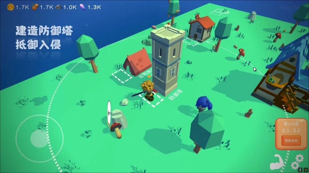 4.游戏里只有切换采集和攻击的按钮,并且只要是走到建筑旁边会自动出现弹窗,很难受,建议增加一个交互按钮,能自主攻击,在需要升级的建筑前可以自主打开。