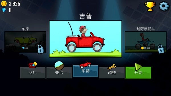 2、各种各样的越野车等你来解锁,利用你收集的金币来解锁汽车才能去驾驶使用