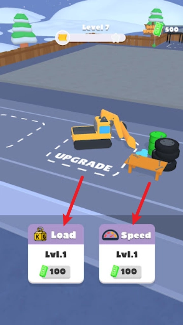 3、过程中我们还可以去升级自己的卡车,提升速度或者挖掘面积。