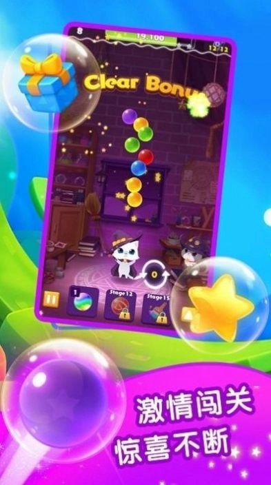 房东的招财猫最新版是一款充满欢乐趣味的休闲消除小游戏,玩家通过发射相同泡泡进行连接消除,玩法十分简单。不过若想完美通关,还需仔细思考泡泡的发射位置。游戏中趣味十足的消除音效能带来极致体验,经典的消除玩法也十分解压,感兴趣的玩家快来试试吧!