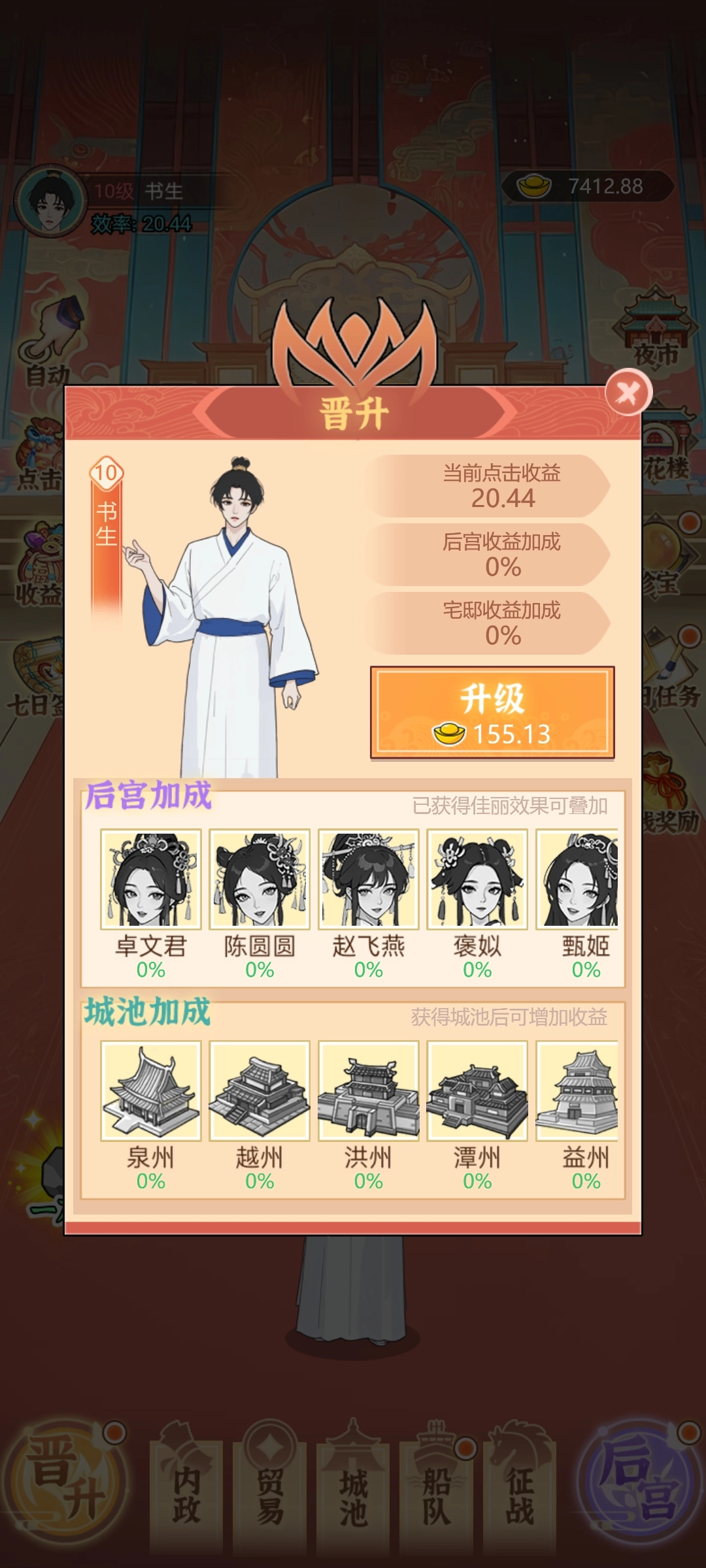 3、玩家可以根据自己的喜好选择喜欢的妃子来亲近。