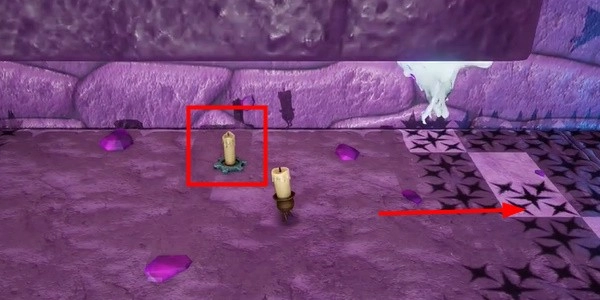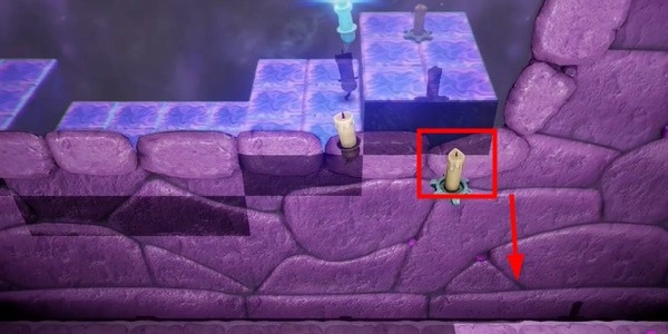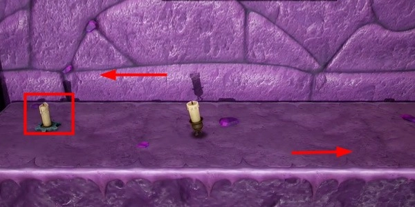3. 沿着这里的倒影找到另一支蜡烛所在的地方并点燃它,然后向左走,点燃里面的蜡烛,然后原路返回。