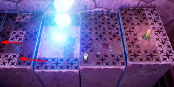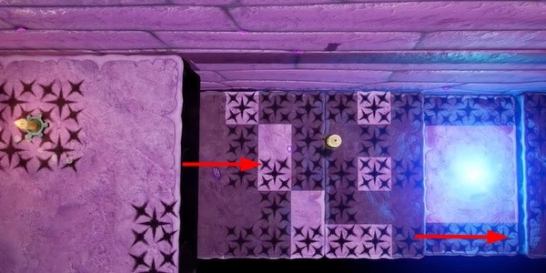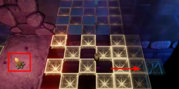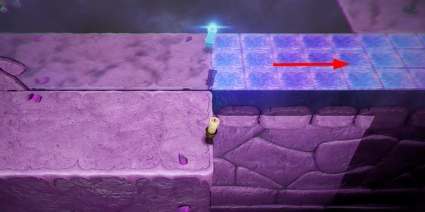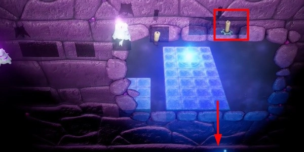 2. 前进。我们需要走到有阴影的地方,这样才能成功点燃第三支蜡烛。然后按照前面的方法点燃第四支蜡烛,继续往下走。