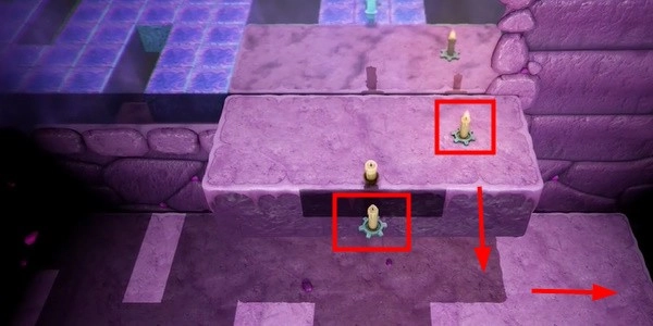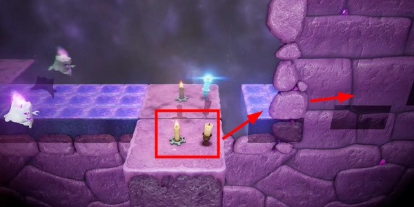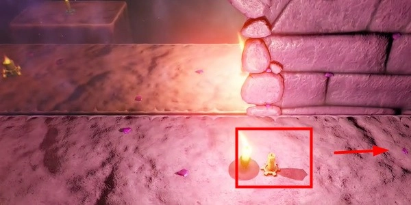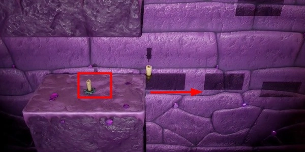 4. 按照图像找到巨石并点燃蜡烛。这里会有蜡烛鬼。用光把它们吓跑,然后寻找下一支蜡烛。
