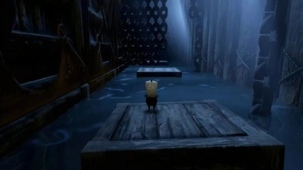 游戏中这般「自然而然」的设定比比皆是:在第一章「废船」场景之中除了蜡烛人本身,还会周期性地出现外部光源。玩到后面谜底揭开,原来这些光是由远处的灯塔投射下来的——这进一步推动了剧情的发展:小蜡烛见状立下了「成为灯塔」的梦想。另外,蜡烛点燃时会理所当然地一路流下在黑暗中也可见的蜡油,从而在死亡后可以跟从上一次留下的痕迹摸黑行动,节省蜡烛的使用,相当于每次死亡都会降低后续游戏的难度。