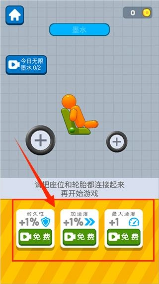4、开始游戏后点击屏幕开始加速,如果车子翻倒,你不用担心一直点击屏幕加速车子还是能够前进,想赢得比赛必须将车子合理的组成。