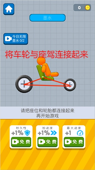 玩家通过画笔将碰碰车的车轮与座驾链接起来