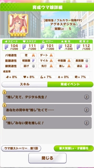 4、第三个隐藏事件名为“属于我的幸运星”,该事件对马娘的属性影响最明显。想要触发它需要马娘参加天皇赏秋以及有马纪念并夺冠,整体难度也不高但是对耐力有额外要求,建议学习至少两个金色回体技能求稳。