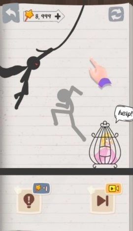 3、尝试一些新方法,帮助英雄成功逃离绳索!