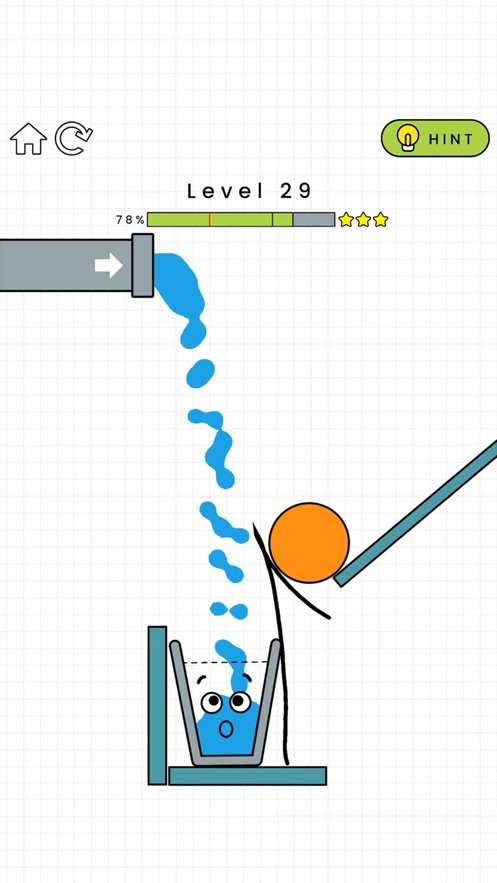 3、众多设计巧妙脑洞大开的关卡等你挑战,发动你的聪明头脑让水杯都注满水吧。
