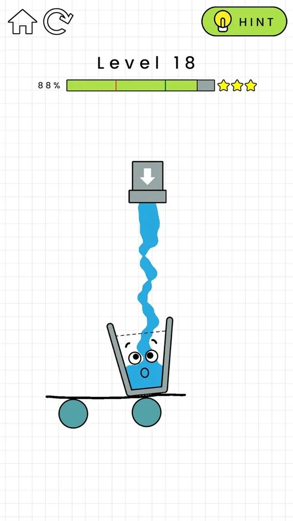 游戏中从下水口开始,想办法通过画线的方式将水引流到水杯处,装填到水杯的及格线才算过关。