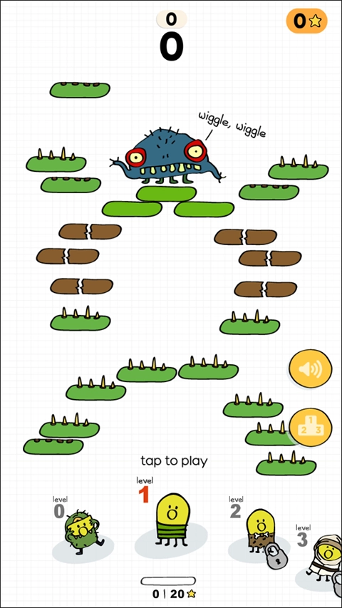 涂鸦跳跃2游戏具有令人愉悦的崭新环境、最可爱的新角色、有趣的新平台挑战以及一些愚蠢的新怪物,在游戏中收集足够多的星星,可以为你的游戏带来更好的关卡挑战,当然到后面的关卡会越来困难,所出现的障碍也就越多了哦,这个时候玩家需要掌握的技能要求就越高,所以你准备好了吗?