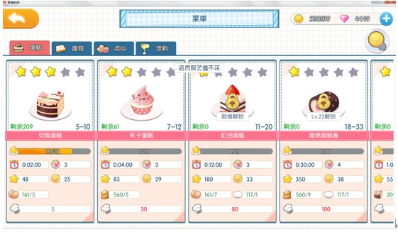 有些小厨娘还处于迷糊状态,明明大家都是店员,怎么有些甜品就是做不了呢?系统会提示“店员厨艺值不足”,其实是因为当前负责制作的厨师厨艺没达到该甜品的要求,得给厨师升级才行。接下来由老执事我给大家讲讲提升厨艺的方法(就拿红毛的阿尔克斯举例吧,他厨艺只有26,所以做不了杯子蛋糕):