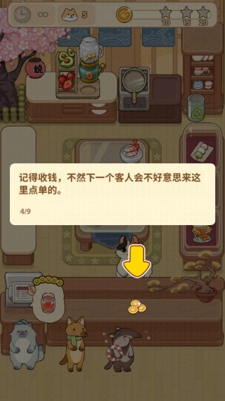 6、上方会显示剩余的顾客数量,右上方是游戏通关星级;
