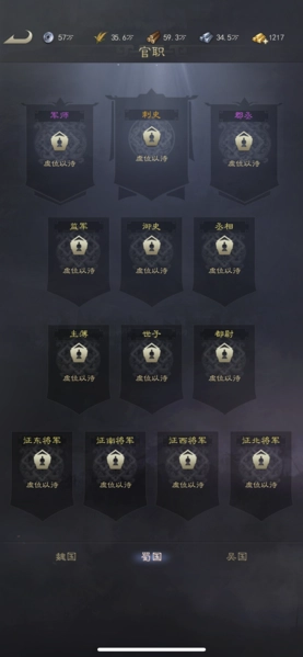 真三国录国家官职可任命国家内的成员为国家的相关官职,国家元首由在黄金城战争中杀敌最多的成员自动产生,占领不同数量的黄金城,元首的称谓及官职的解锁数量则不同。