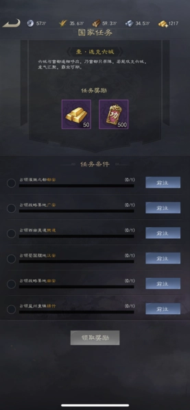 国家任务集合了国家个人任务和国家共有任务,国家任务进程越高,可解锁的功能越多。