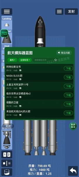 航天模拟器汉化模组版(火箭蓝图)是一个经过修改的版本,它整合了蓝图与模组资源包,玩家能够直接在此搜索所需的火箭蓝图,下载到本地后就能快速复刻同款火箭。同时,玩家也可以自由挑选各类不同配件,组装出专属于自己的独特火箭,开启太空探索之旅。在游戏中,玩家将化身为航天工程师,利用丰富多样的部件尽情发挥创意,打造出专属的个性化火箭。此外,游戏采用了真实的物理引擎,无论是燃料配比还是轨道计算都高度贴近现实情况,发射升空时的震颤感、进入轨道后的漂浮感等细节都清晰可感,带来沉浸式的航天体验。