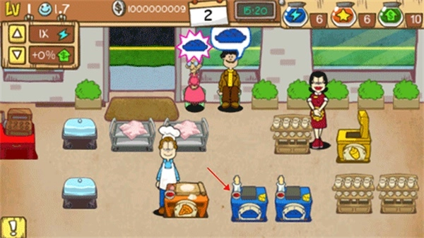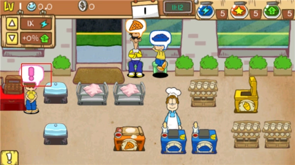 9、客人用餐完毕后会前往结账区域,玩家只需点击红色感叹号,系统便会自动完成钱币结算。