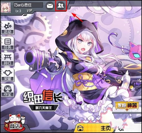 1、打开游戏主程序后,在界面左上方点击按钮;