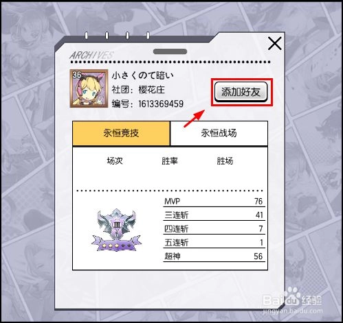 6、选择要添加好友的玩家,点击并查看玩家信息;