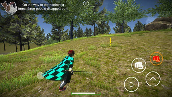 4、在屏幕左侧滑动可呼出用于操控角色前进后退的移动按钮;游戏内左上角显示任务目标,其对应着任意方位的一个感叹号,玩家需控制角色朝着该感叹号的方向奔跑。