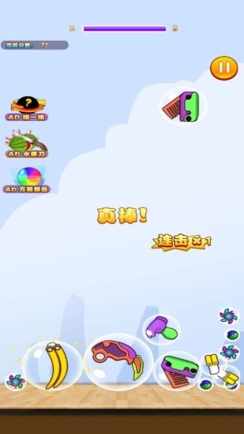 在挑战的时候你可注意滑动水果的时机,这样即可让它们进入到重要位置上。